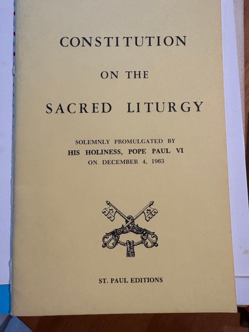CONSTITUTION ON THE SACRED LITURGY - SOLEMNLY PROMULGATED BY HIS HOLINESS, POPE PAUL V1 ON DECEMBER 4, 1963. A GENTLY USED BOOKLET IN GOOD CONDITION.